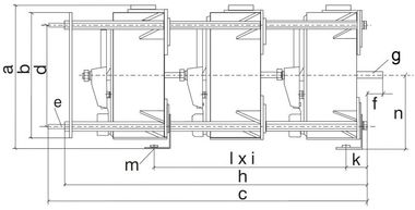 | a in mm | b in mm | c in mm | d in mm | e | f in mm | g ∅ in mm | h in mm | l xi in mm | k in mm | m | n in mm | Masse in kg | |